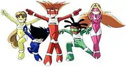 ![]() The five main Rangers in their Revolution era. From left to right: Lisa, Ken, Fox, Kiko and Tati. | |