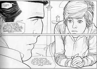 Panel showing Commissario Spada and, on the right, his son Mario.