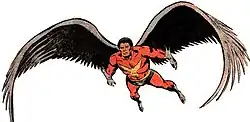 | Abilities | Enhanced strength, agility and reflexes. Flight via wings. |
