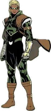 ![]() Artwork of Connor Hawke's design for the 2023 Green Arrow series. Art by Sean Izaakse. | |