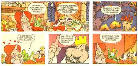 The frog Conrad, needing money to pay his bookie, convinces the fat, dim-witted fairy tale princess that he is an enchanted prince who can be turned into a human by a kiss.[2]