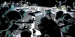 ![]() The Court of Owls surrounds Batman. Art by Greg Capullo. | |