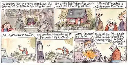 {{cite web}}: Missing or empty|url=(help) - ↑ Thompson, Richard. "Comment on Cul de Sac Strip for September 22, 2012". Retrieved 23 September 2012.