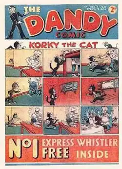 The Dandy was a Scottish children's comic magazine published by the Dundee based publisher DC Thomson.[3] The first issue was printed in December 1937, making it the world's third-longest running comic, after Il Giornalino (cover dated 1 October 1924) and Detective Comics (cover dated March 1937). From August 2007 until October 2010, it was rebranded as Dandy Xtreme.
