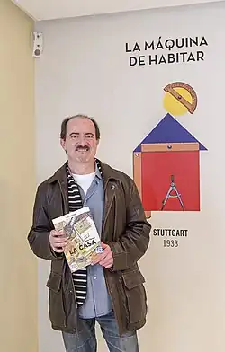 ![]() Daniel Torres with the cathalogue of the exhibition of his works held at IVAM, 2017. | |