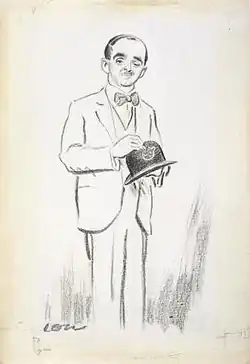 Low began his career as a professional cartoonist with the Canterbury Times in 1910. In 1911 he moved to Sydney, Australia to join The Bulletin. A large format collection of some 350 pieces for those papers was published in the album Caricatures by Low 1915.[2] During his employment at The Bulletin, Low became well known for a 1916 cartoon satirising Billy Hughes, then the Prime Minister of Australia, entitled The Imperial Conference. After that success, Low published many cartoons depicting Hughes' forceful and eccentric personality. Hughes was not impressed and apparently called Low a "bastard" to his face.[3] A collection of Low's cartoons of Hughes entitled The Billy Book, which he published in 1918, brought Low to the notice of Henry Cadbury, part-owner of The Star. In 1919 Cadbury offered Low a job with the Star, which Low promptly accepted.