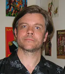 David Nessle (born 1960) is a Swedish comic creator, known for his semi-philosophical comics such as Döden Steker En Flamingo, as well as adolescent humor funnies like John Holmes & Sherlock Watson (the latter in collaboration with Joakim Lindengren). He has been published in magazines such as Galago, Mega-Pyton and Kapten Stofil, and in several comic albums. David was for many years active in the Swedish Science fiction fandom and the creator of several fanzines. He was also the founder and front figure of the Sala-based band "Geggamoja Übermench och det heterosexuella närstridskommandot".