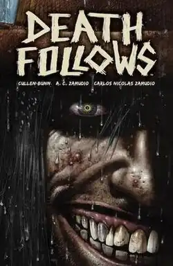Death Follows is a graphic novel written by Cullen Bunn and illustrated by A. C. Zamudio. It is based on the short prose story "Remains" by Bunn. It was initially published as a digital exclusive comic by MonkeyBrain Comics on ComiXology under the name The Remains in four parts in 2014.[1][2] It was later republished as a graphic novel by Dark Horse Comics in 2016.[3]