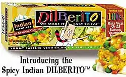 The Dilberito was a vegetarian microwave burrito introduced in 1999 by Scott Adams Foods, Inc. and named after the comic strip character Dilbert. The product went out of production in 2003.[1]