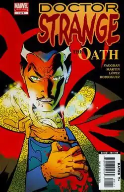 Doctor Strange: The Oath is a 2007 comic book limited series written by Brian K. Vaughan, drawn by Marcos Martin, published by Marvel Comics and starring the superhero Doctor Strange.[1] The story follows Doctor Strange as he searches for the person who tried to kill him, while he also looks for a stolen magical elixir that will cure the terminal cancer of Wong, his faithful servant. Doctor Strange finds himself facing another disciple of the Ancient One, who has learned about the elixir and is determined to destroy it.