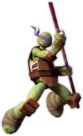 Donatello, nicknamed Donnie, is a superhero and one of the four main characters of the Teenage Mutant Ninja Turtles comics and all related media.[1][2] He is the smartest and often gentlest of his brothers, wearing a purple mask over his eyes. He wields a bō staff, his primary signature weapon in all media.