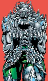 Doomsday is a supervillain character appearing in American comic books published by DC Comics. Created by Dan Jurgens, the character first made a cameo appearance in Superman: The Man of Steel #17 (November 1992) before being fully introduced in Superman: The Man of Steel #18 (December 1992).[2] He has become one of Superman's most enduring enemies belonging to the collective of adversaries that make up his rogues gallery. Doomsday ranked as #46 on IGN's list of the Top 100 Comic Book Villains of All Time.[3]