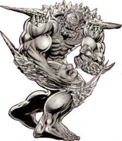 ![]() Doomsday as he appeared in Superman/Doomsday: Hunter/Prey #2 (May 1994). Art by Dan Jurgens (pencils), Brett Breeding (inks), and Greg Wright (colors). | |