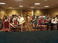 Dragon Con hosts a variety of gaming sessions and tournaments. These include board games, miniature games, collectible card games, console games, live action and other role-playing games, tables hosted by gaming companies, and panel sessions.[34]