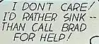 The painting has been described as a "masterpiece of melodrama", and is one of the artist's earliest images depicting women in tragic situations, a theme to which he often returned in the mid-1960s. It shows a teary-eyed woman on a turbulent sea. She is emotionally distressed, seemingly from a romance. Using the conventions of comic book art, a thought bubble reads: "I Don't Care! I'd Rather Sink — Than Call Brad For Help!" This narrative element highlights the clichéd melodrama, while its graphics — including Ben-Day dots that echo the effect of the printing process — reiterate Lichtenstein's theme of painterly work that imitates mechanized reproduction. The work is derived from a 1962 DC Comics panel; both the graphical and narrative elements of the work are cropped from the source image. It also borrows from Hokusai's The Great Wave off Kanagawa and from elements of modernist artists Jean Arp and Joan Miró. It is one of several Lichtenstein works that mention a character named Brad who is absent from the picture.