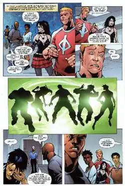 - ↑ Faerber, Jay. Dynamo 5 #11, March 2008, Image Comics