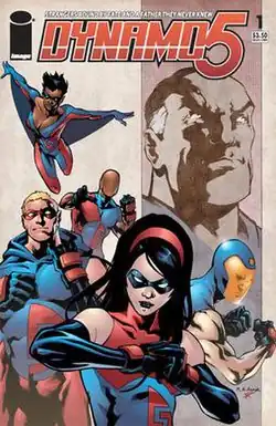 Dynamo 5 is a comic book superhero team created by writer Jay Faerber and artist Mahmud A. Asrar, which appears in an eponymous series published by Image Comics. The team first appeared in Dynamo 5 #1 (Jan. 2007). The monthly series ended with issue #25 (Oct. 2009). The team later appeared in a 2010 miniseries, Dynamo 5: Sins of the Father, and the one-shot Dynamo 5 Holiday Special 2010 (Dec. 2010).