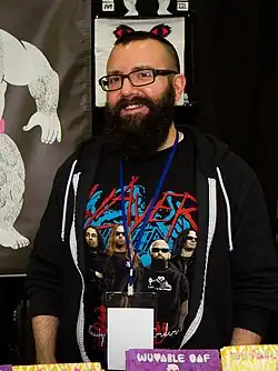 He is a two-time Ignatz Award nominee for the series, garnering nominations in 2009 for Promising New Talent[5] and in 2015 for Outstanding Artist,[6] and was a 2016 Lambda Literary Award nominee for LGBT Graphic Novel,[7] A second volume, Wuvable Oaf: Blood and Metal, was published in 2016,[8] and won the Award for LGBT Graphic Novel at the 29th Lambda Literary Awards.[9]