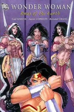 ![]() Cover of Wonder Woman: Ends of the Earth (2009); hardcover collected edition, art by Travis Lanham. | |