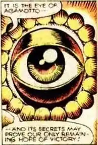 The Eye of Agamotto (/æɡəˈmɒtoʊ/) is a fictional, mystical item appearing in American comic books published by Marvel Comics. The item appears in publications that feature Doctor Strange. The Eye of Agamotto and Agamotto in his caterpillar form also appeared in the Gold Key Dark Shadows comic book, Collinwood Possessed!.[2] The Eye of Agamotto is the name commonly given to the amulet Strange wears on his chest, though the Eye resides within the amulet and is released from time to time.