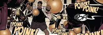 Goldballs is a mutant with the superhuman ability to project at high-speed gold-colored non-viable ball-shaped eggs made of a mysterious substance and of variable sizes from anywhere on his body, and which he can use as concussive weapons. Goldballs can create an infinite quantity of these balls, which can bounce, and emit a "poink" noise when they connect with something. When he concentrates, he is able project the balls in a straight line and he can also direct them to move to a specific area. Goldballs can reabsorb the balls into his own body, and when he is calm he can make them disappear.[7]