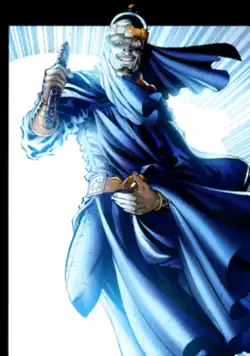 Throughout the character's history, various stories showcase or mention the early history of the character. The earliest recorded accounts of the sorcerer known as Felix Faust date back to approximately 5,000 BC when he emerged in the African empire of Kor. During this time, Kor was ruled by King Nommo, a prominent wizard and the guardian of the Flame of Life. Faust, driven by his malevolent ambitions, engaged in a fierce battle with Nommo, seeking to harness the Flame's power for his purposes. Nommo absorbs the Flame, defeats Faust, and banishes him to another dimension.[3]