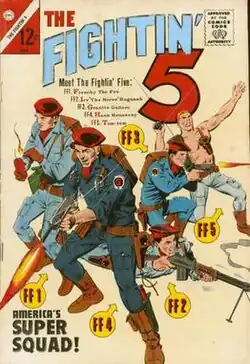 The Fightin' 5 are a Charlton Comics Special Forces paramilitary team, similar to DC Comics' Blackhawks. They debuted in Fightin' 5 #28 (July 1964), and were created by Joe Gill and Bill Montes.