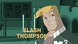 The Ultimate Marvel incarnation of the character is Fredrick "Fred" Thompson,[74] a high school jock who bullies Peter Parker and is friends with fellow student Kenny "Kong" McFarlane.[74] Unlike most versions, he does not idolize Spider-Man (something that Kenny does instead) and is generally portrayed unsympathetically. When Flash challenges Peter to a fight, Peter merely blocks a punch from Flash and manages to break his hand. When Peter joins the basketball team, Flash's attitude changes, on account of his tendency towards loyalty to his teammates. When Flash suddenly wants to talk to Peter alone for a moment on at least two occasions, Peter turns him down rather furiously, believing he just wanted to bully in private. After Gwen Stacy's death, it is revealed that Flash had a crush on Gwen and was actually trying to ask Peter for help in approaching Gwen for a date. During Silver Sable's hunt of Spider-Man, Flash is kidnapped after being mistaken by the Wild Pack for Spider-Man, having only moments before disappeared into an alley Flash happened to be standing in. After realizing their mistake, the group considers killing him but Flash is able to escape. This experience gives Flash a new level of popularity within the school, especially after a TV movie is made about his ordeal. After Peter's apparent death as Spider-Man, Flash realizes that he is the only one who did not know that his former bullying victim and the young hero are the same person.[75]