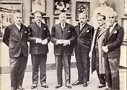 He hosted his first solo show in 1921, exhibiting drawings made during (and depicting) the First World War. In the interwar period, he dedicated himself increasingly to painting, and established the "Group of four" ("Grupul celor patru") with Nicolae Tonitza, Ștefan Dimitrescu, and Oscar Han.[2] This group, consisting of leading artists of the period, was not united by a cohesive philosophy; rather, it was a group bound mainly by friendship and collaboration.[1]