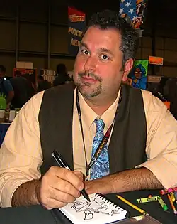 Franco Aureliani is an American comic book writer/artist, best known for writing the DC Comics series Tiny Titans, for which he won two Eisner Awards in 2009 and 2011. Tiny Titans also won a Harvey award in 2011. He was also nominated for another Harvey in 2013 for another project from DC Comics, Superman Family Adventures. He and longtime writing partner and friend, Art Baltazar, won their third Eisner in 2014 for the Dark Horse Comics children's series Itty Bitty Hellboy. He also teaches art at Carmel High School.