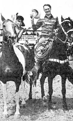 ![]() Garbed as Red Ryder, Fred Harman appeared at this 1953 event with 13-year-old Samuel Trujillo, Harman's model for Little Beaver. | |