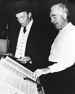 During the 1940s and early 1950s, Waring and His Pennsylvanians produced a string of hits, selling millions of records. A few of his many choral hits include "Sleep", "Battle Hymn of the Republic", "Smoke Gets in Your Eyes", "Button Up Your Overcoat", "White Christmas", "Give Me Your Tired, Your Poor", and "Dancing in the Dark".[9] In 1964 he recorded two albums with Frank Sinatra and Bing Crosby: America, I Hear You Singing and 12 Songs of Christmas, for Sinatra's Reprise label.