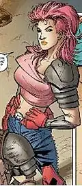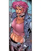 She has short naturally auburn hair,[6] which has been dyed pink (or sometimes red), and is usually depicted with a tattered hot pink T-shirt and blue pants, colors that match her twin brother, Zandar. She is the firstborn of the twins, and often the unequivocal leader of the two.[7] She supposedly also has the same ability to change skin color as her brothers, but this was never portrayed in either her comic book or cartoon incarnations. According to former G.I. Joe product manager Kirk Bozigian at the 2013 Official G.I. Joe Convention, Zarana's original filecard art was inspired by 80's punk rock singer Wendy O. Williams.