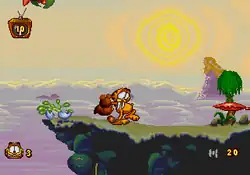 The levels, though linear in nature, are large and populated with obstacles, enemies and environmental hazards, inviting the player to traverse the stage by running, jumping, climbing, swinging, throwing objects or dodging enemies. Later levels become more maze-like and exploratory, making the player take different routes to reach the end, where a boss must be fought to progress further. There are two types of bonus rounds, one of which resembles a Whac-A-Mole game. Each time the player defeats a boss, Garfield takes a commercial break where he rockets through the Television Wasteland, trying for an extra life or a continue.[4][5]