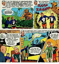 Early in the Legion's history, Garth is killed battling Zaryan the Conqueror and resurrected following the sacrifice of Proty.[4] A later retcon revealed that Proty's mind had taken over Lightning Lad's body, but this has since been eliminated from Legion canon.[5]