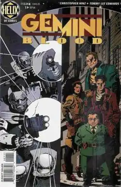 Gemini Blood is a nine-issue comic book series published by American company DC Comics under its Helix imprint.[1] Dated from September 1996 to May 1997, the series was written by Christopher Hinz and illustrated by Tommy Lee Edwards. It was placed in the same universe as Hinz's Paratwa Saga, featured in his trilogy of novels consisting of Liege-Killer (1987), Ash Ock (1989) and The Paratwa (1991). Set in the mid 21st century, the world of Gemini Blood was one of increasing global chaos. The plot of the comic followed a group of four adventurers as they attempted to combat the Paratwa, a race of genetically engineered assassins who share a psychic bond between two bodies.
