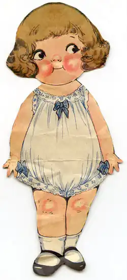 The Campbell Soup Kids were an iconic staple of Campbell's Soup advertising strategy for decades.[2] The Campbell Soup Kids drawings and memorabilia remain popular with antique collectors.[3][2] It is possible that Drayton's work had some influence on Japanese Shōjo manga in the late 1930s.[2] Drayton's Dolly Dingle dolls are part of the Joseph Downs Collection at the Winterthur Museum, Garden and Library.[4][7] Some of her work is also part of the collection at The Cartoon Museum.[4]