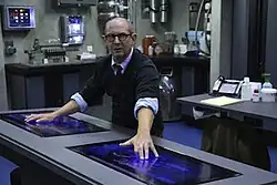 - Franklin Hall appears in the first season episode "The Asset", portrayed by Ian Hart.[29] This version is a Canadian physicist who was abducted by his former partner, Ian Quinn (portrayed by David Conrad[30]), to finish work on a gravity manipulator powered by a liquid metal-esque, gravity-manipulating substance called gravitonium. Believing it is dangerous, Hall attempts to destroy the substance. S.H.I.E.L.D. agent Phil Coulson tries to save Hall, but the latter is pulled into the gravitonium, where he got trapped.[31] The substance reappears in the episode "Providence", when Hydra agents release it before their leader John Garrett gives the gravitonium back to Quinn.[32] In a flashback depicted in the fifth season episode "Inside Voices", Quinn is absorbed by the gravitonium following Garrett's defeat.[33]