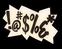 Grawlix (/ˈɡrɔːlɪks/) or obscenicon is the use of typographical symbols to replace profanity. Mainly used in cartoons and comics,[1][2] it is used to get around language restrictions or censorship in publishing. At signs (@), dollar signs ($), number signs (#), ampersands (&), percent signs (%), and asterisks (*) are often used symbols.[3] The characters may resemble the letters they replace, such as "$" standing in for "S".[3]