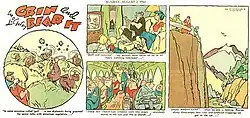 ![]() For his Sunday feature, George Lichty often grouped four cartoons in this layout design of two horizontal cartoons between a circle and a vertical. (August 2, 1953) | |