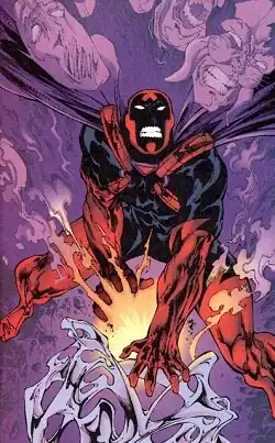 Extant first reappears in the 1999 one-shot "Impulse: Bart Saves the Universe".[5] In it, Extant picks a fight with the original Justice Society as a means of tricking the Linear Men into saving the life of an innocent bystander who was destined to die. The man they saved would now go on to develop a nuclear weapon that, when tested, would shift the Earth out of its proper orbit, causing massive changes in the timelines of some of Earth's greatest heroes. Among these changes, Hal Jordan never becomes Green Lantern, thus he never becomes Parallax, and never stops Extant from destroying all of time. Fortunately for the citizens of time, Impulse arrives and is barely able to defeat Extant and prevent the Linear Men from saving the doomed scientist.