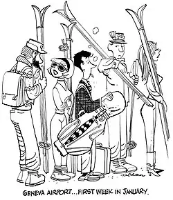 Ketcham's first wife, Alice Louise Mahar Ketcham, died on June 22, 1959, of a drug overdose.[1] The real-life Dennis was 12 when his mother died. Ketcham and Alice were separated at the time of her death. Ketcham did not inform his son of his mother's death, or visit his son, until she was buried, and Dennis was not present at the funeral. Three weeks later, Ketcham married Jo Anne Stevens, who he met on a blind date. The family moved to Geneva, Switzerland, where they lived from 1960 to 1977, where Ketcham continued to produce Dennis the Menace. Dennis had difficulty with his schooling, though, so was sent to boarding school in Connecticut, while Mr. Ketcham and his second wife remained in Switzerland. This marriage ended in divorce in 1968.[9]