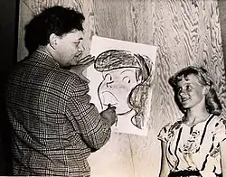 ![]() Harry Haenigsen is seen drawing his character Penny Pringle in this photo by Maynard Clark. | |