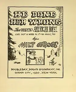 He Done Her Wrong is a wordless novel written by American cartoonist Milt Gross and published in 1930. It was not as successful as some of Gross's earlier works, notably his book Nize Baby (1926) based on his newspaper comic strips. He Done Her Wrong has been reprinted in recent years and is now recognized as a comic parody of other similar wordless novels of the early 20th century, as well as an important precursor to the modern graphic novel.[1]