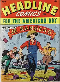 Headline Comics (For The American Boy) was an American comics magazine published by Prize Comics (under the indicia titles American Boys' Comics, Inc. for 21 issues, and Headline Publications, Inc. for 26 issues) from February 1943 – October 1956.[1] The comic was transformed from a boy superhero/adventure title to a crime comic in 1947, with issue #23[2] (March). The publication became an anthology of the deeds of gangsters and murderers.[3]