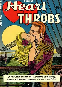 Heart Throbs was a romance comic published by Quality Comics and DC Comics from 1949 to 1972. Quality published the book from 1949–1957, when it was acquired by DC. Most issues featured a number of short comics stories, as well advice columns, text pieces, and filler. The long-running feature "3 Girls—Their Lives—Their Loves", drawn by Jay Scott Pike and inked by Russ Jones, ran in Heart Throbs from 1966–1970.