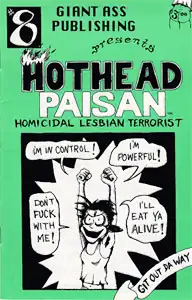 Hothead Paisan: Homicidal Lesbian Terrorist is an alternative comic written and drawn by Diane DiMassa published 1991–1998. It features the title character generally wreaking violent vengeance on male oppressors. Recurring characters include Hothead's cat Chicken, her wise mystical friend Roz, a talking lamp, and her lover Daphne.[1][2]
