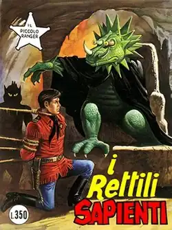 A traditional western series addressed to a young audience, it debuted in 1958 and was published until 1985.[1][2] Until 1963, Il Piccolo Ranger comic books also featured in their appendix episodic stories featuring other characters, including works by Hugo Pratt, Guido Nolitta and Dino Battaglia.[1] It was released fortnightly until 1971, then monthly until its cancellation.[2] Between 1995 and 1996 a collection series in 13 paperback volumes was published in a limited edition by Editrice Dardo.[2]