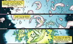 In the "Blackest Night" storyline, Sinestro bonds with the Life Entity and sees the beginning of existence and the origin of the emotional spectrum. Ion is revealed to be the first living being that ever willed itself to move.[10]