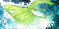 Ion is a whale-like entity and the embodiment of willpower who is the source of power for the Green Lantern Corps. It has been kept a secret for eons, and resides in the Central Battery on Oa to keep Parallax, the parasitic fear entity also imprisoned there, in check. After Hal Jordan, under the influences of Parallax and Sinestro, destroys the Battery, Ion and Parallax are freed, with the former bonding with Kyle Rayner.[2]